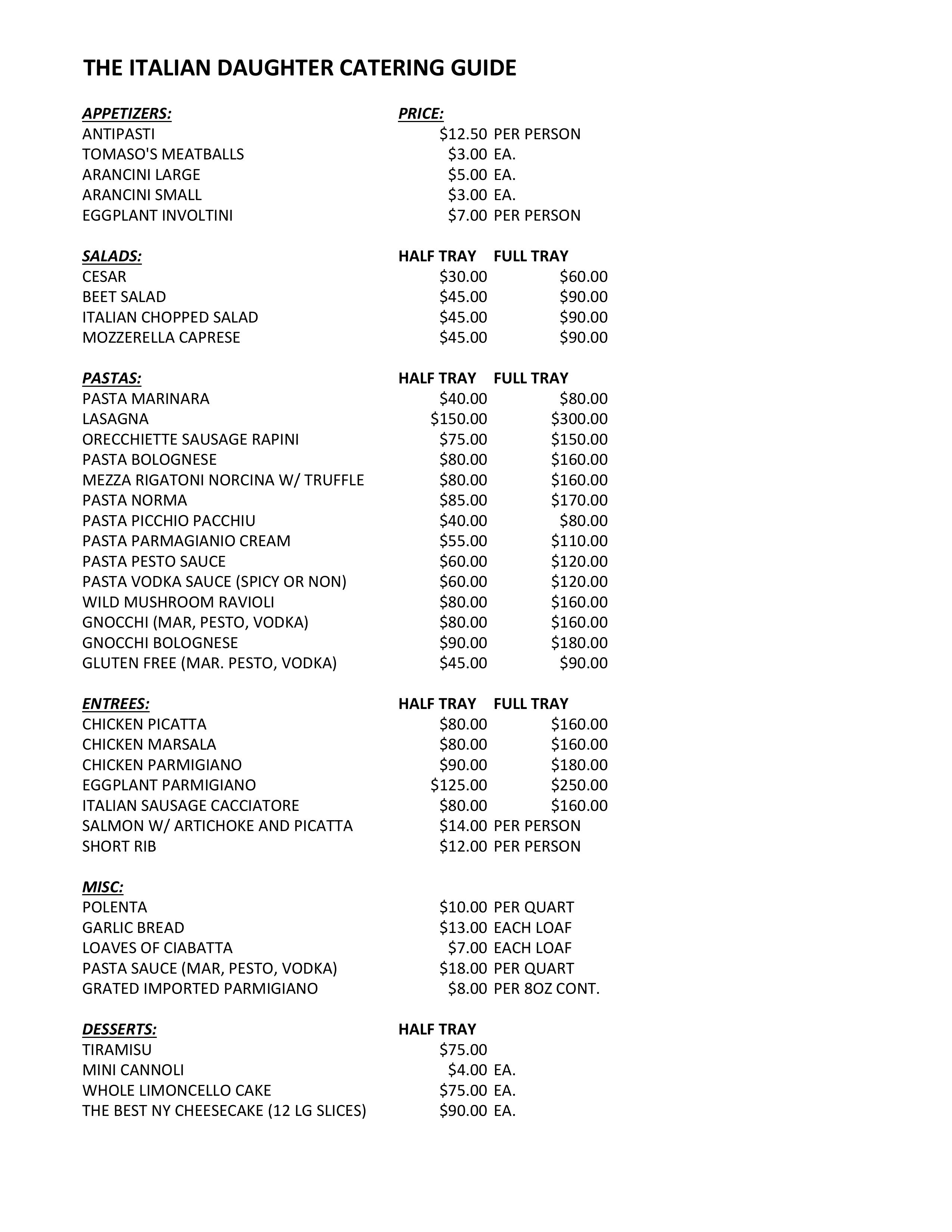 Catering Menu